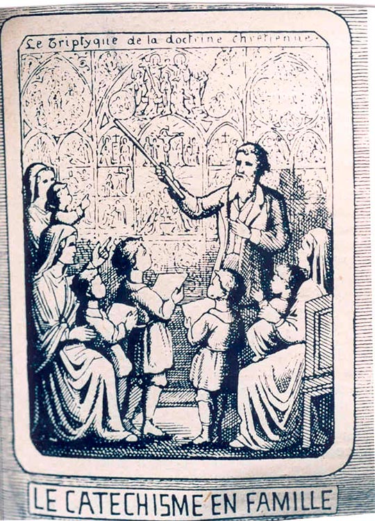 Fig. 6. Adolphe Vasseur s.j., « Le Catéchisme en famille », Triptyque de la doctrine chrétienne, Paris, Librairie catholique de l’Œuvre de Saint-Paul, s.d. [1890].