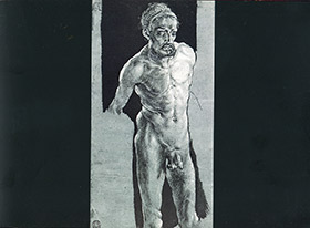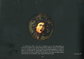 Bien que nous ayons affaire à un lieu de « rassemble[ment] » avec La Nuit sexuelle [1], le texte n’utilise pas cet espace de rencontre pour passer du côté de l’image en cherchant plus à montrer qu’à raconter par exemple. Il n’essaye pas non plus de se joindre à elle en fabriquant, sinon des équivalents, du moins des répondants littéraires aux œuvres plastiques à la manière des psychodrames qu’écrit Artaud parce qu’il les voit et, même, les entend se jouer dans les toiles de Van Gogh [2], à la manière encore des lectures de Zao Wou-Ki par Michaux [3] ou des murs de mots de Dupin qui font écho aux tableaux de matière de Tàpies [4]. Pascal Quignard maintient plutôt un écart entre l’image et le texte tout en nouant leur dialogue : nous est racontée ici une histoire dont une scène nous est montrée là. Il faut cependant être extrêmement attentif au fait que ces récits et ces illustrations prennent place sur un seul et même fond noir, un fond noir duquel l’écriture se détache par sa couleur blanche et duquel se détachent également les reproductions en raison de leur insertion qui n’est que très rarement en pleine page.